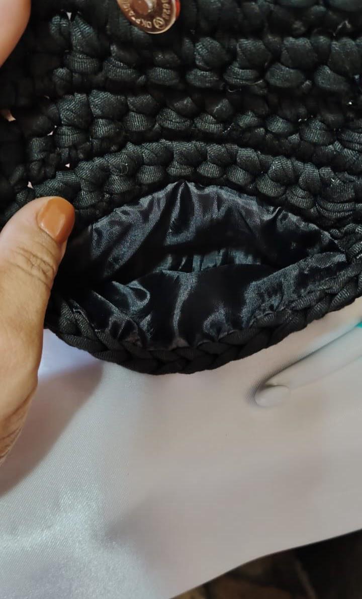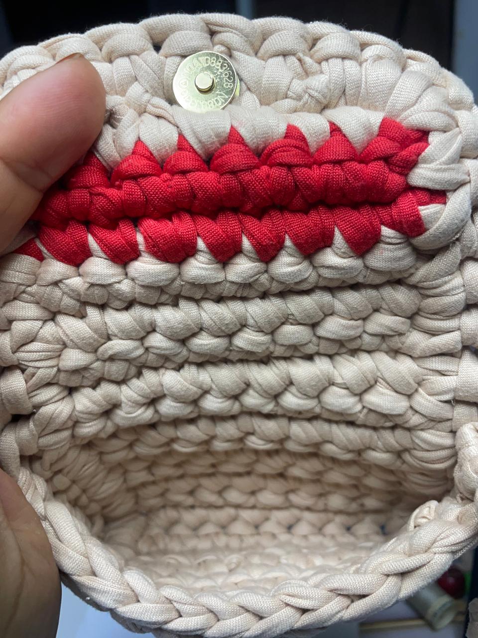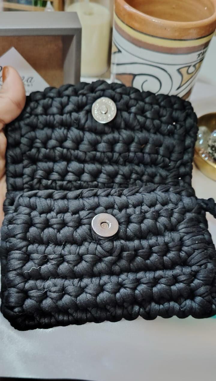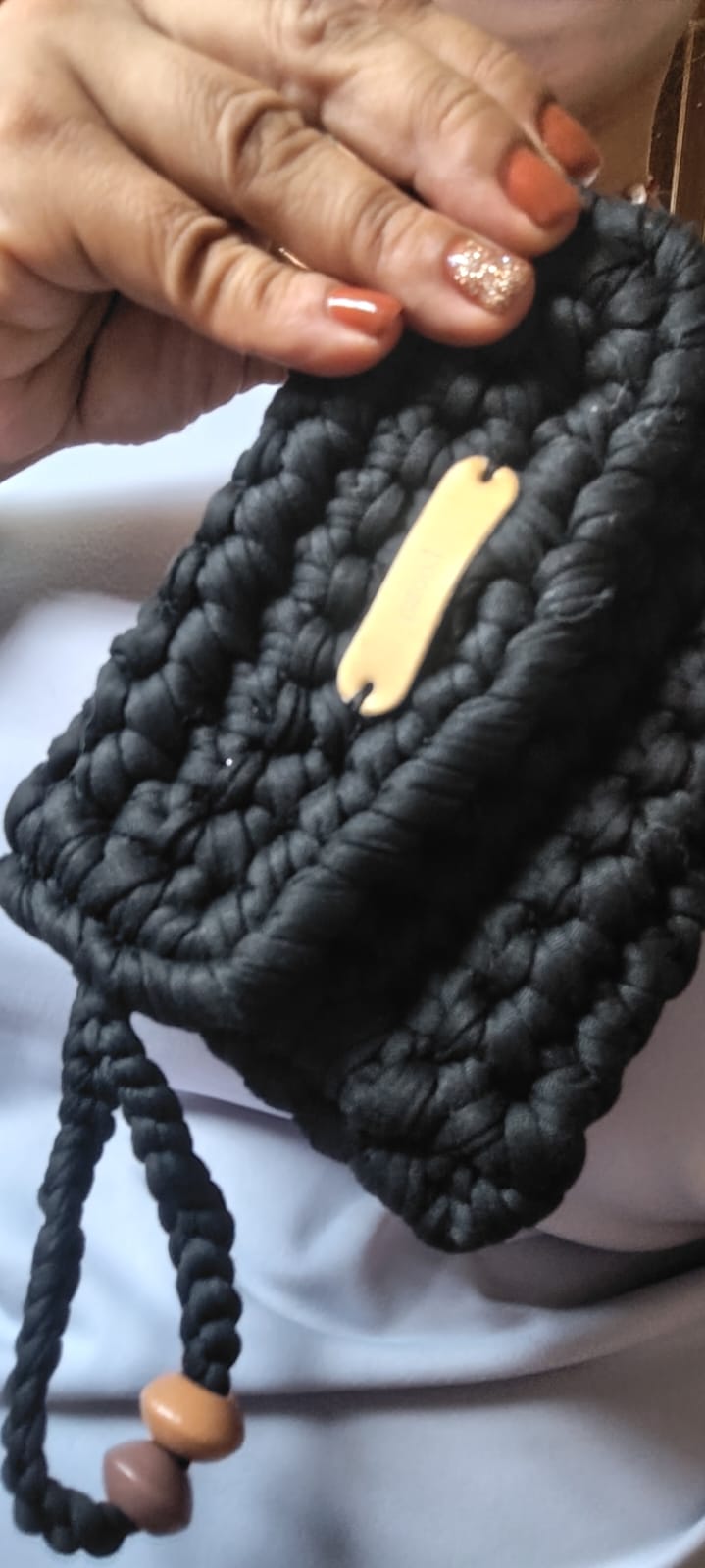 Mini Wallet Ruth, tejida a mano con trapillo premium, diseñada para acompañarte día a día con estilo y delicadeza.
